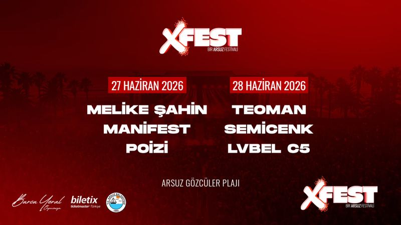 Continue reading "XFEST Arsuz"Arsuz’da yazın en yüksek enerjisi sahneye çıkıyor! 🔥 Melike Şahin, Teoman, Semicenk, Lvbel C5, Manifest ve Poizi ile müzik dolu iki gün seni bekliyor. Ritmi yükselt, kalabalığa karış ve yazın […]